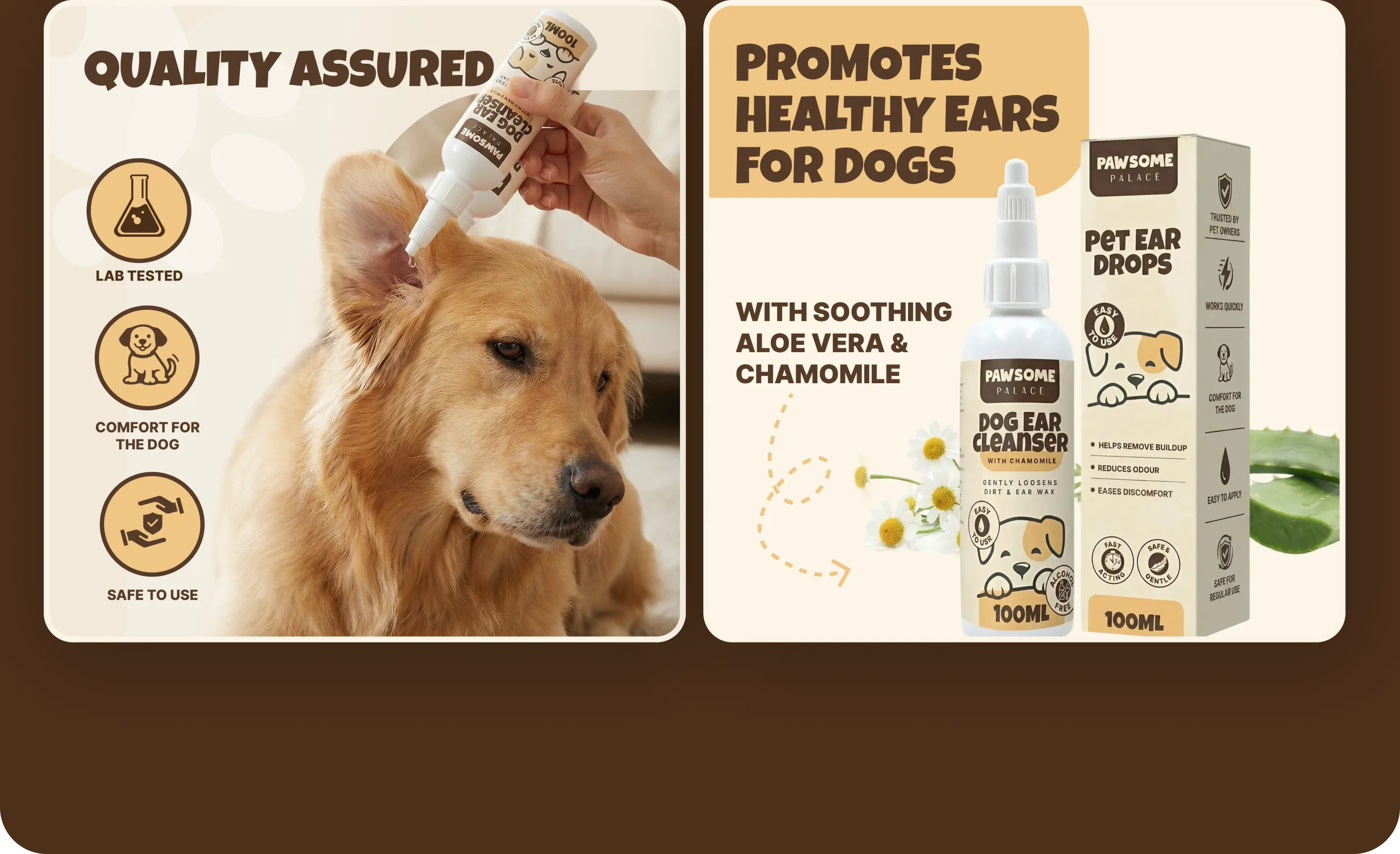 Pawsome is a brand specializing in natural pet care products. Their flagship product is dog ear cleaning drops, formulated with safe, natural ingredients (including aloe vera and chamomile).