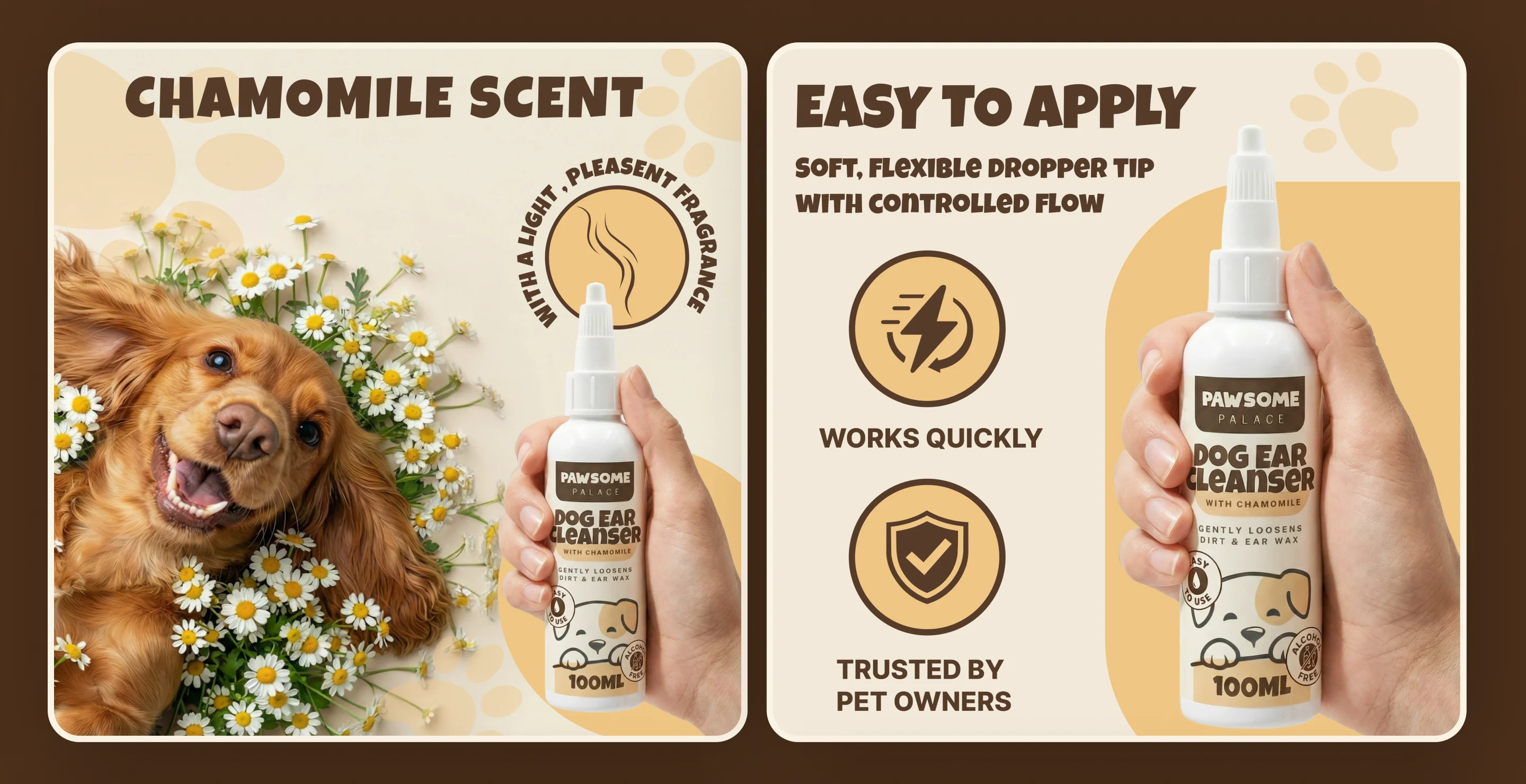 Pawsome is a brand specializing in natural pet care products. Their flagship product is dog ear cleaning drops, formulated with safe, natural ingredients (including aloe vera and chamomile).