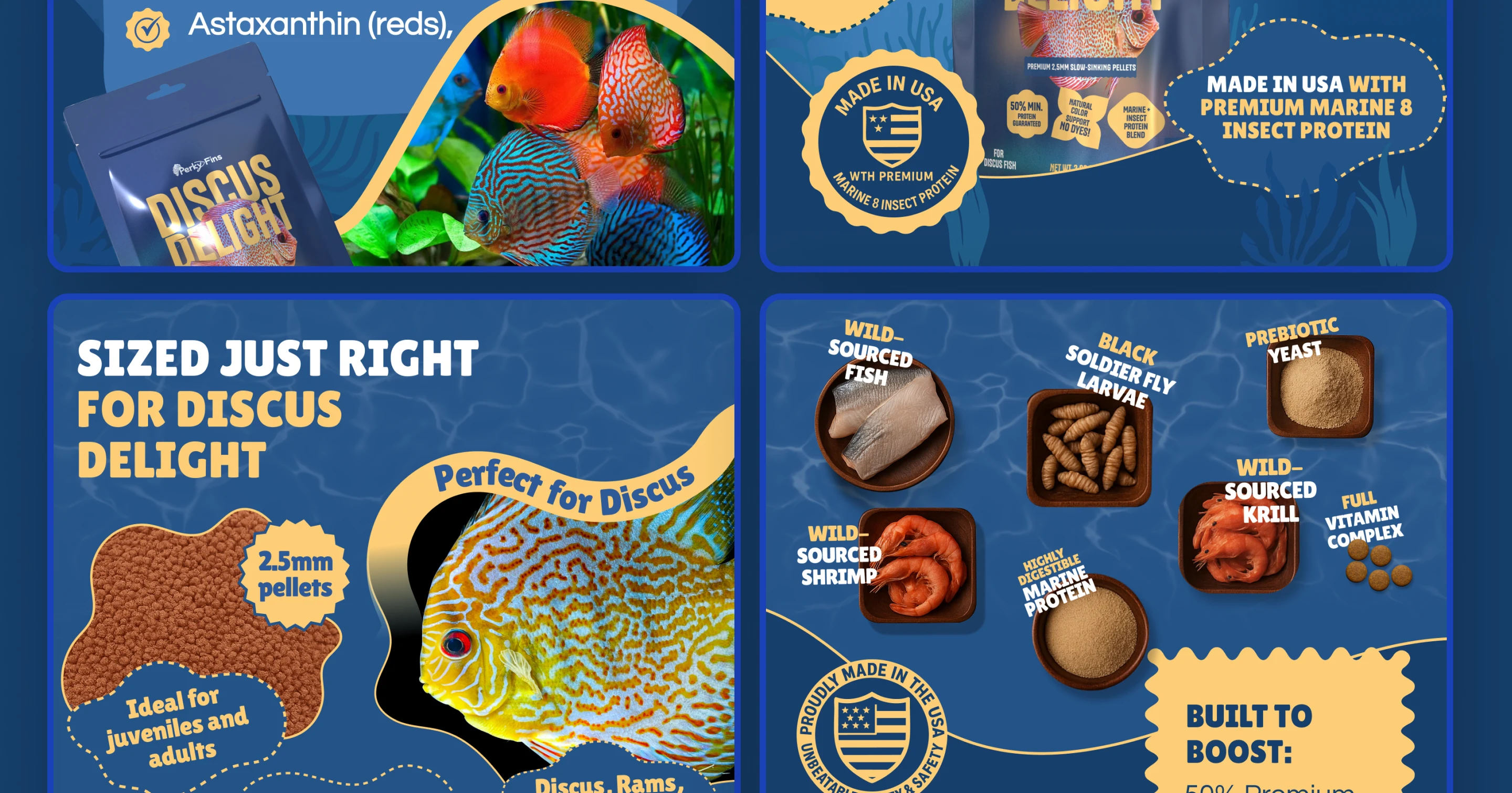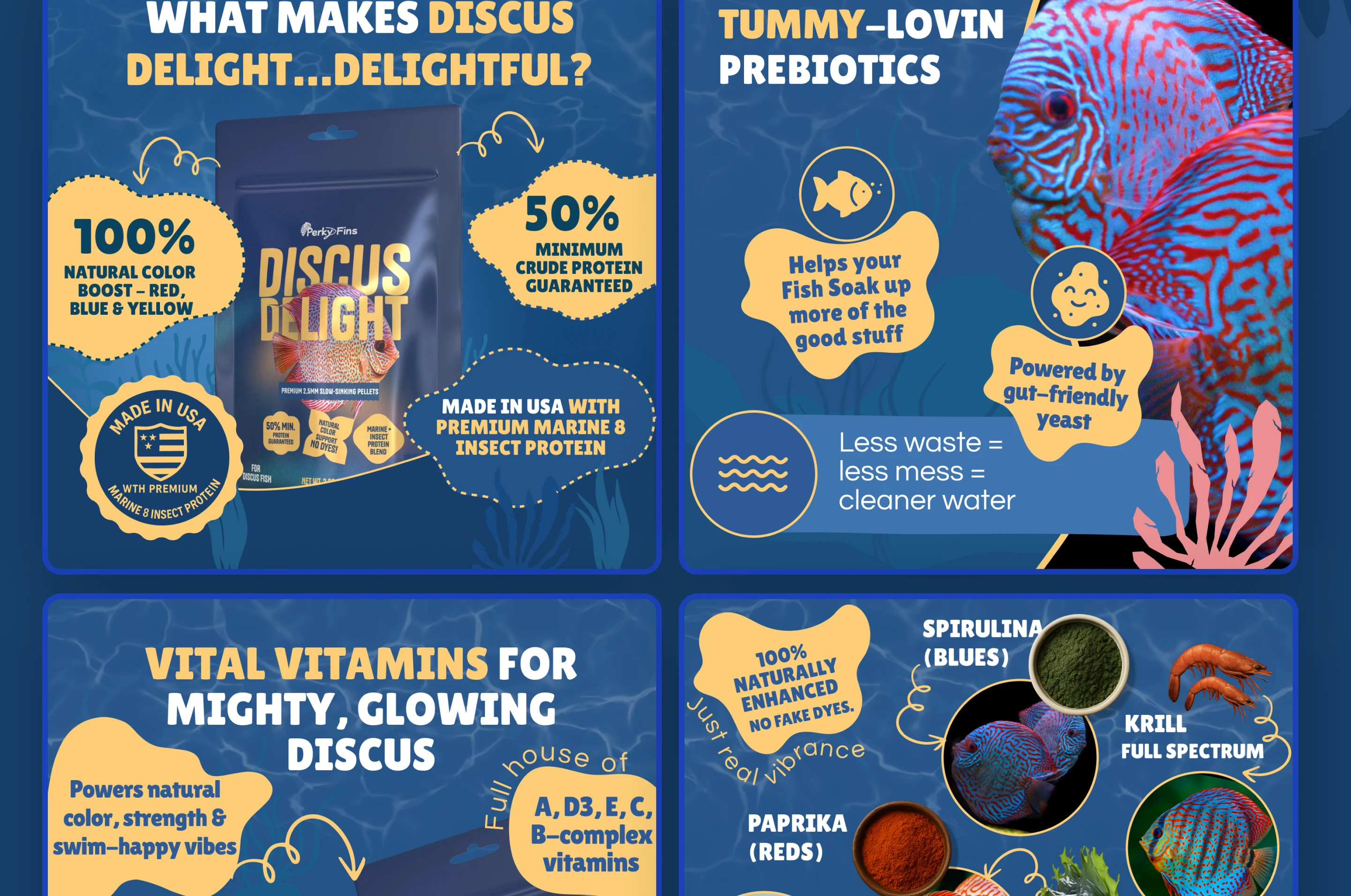- Developed the listing structure, emphasizing key benefits: enhanced coloration, immune support, American quality, and slow-sinking granules.